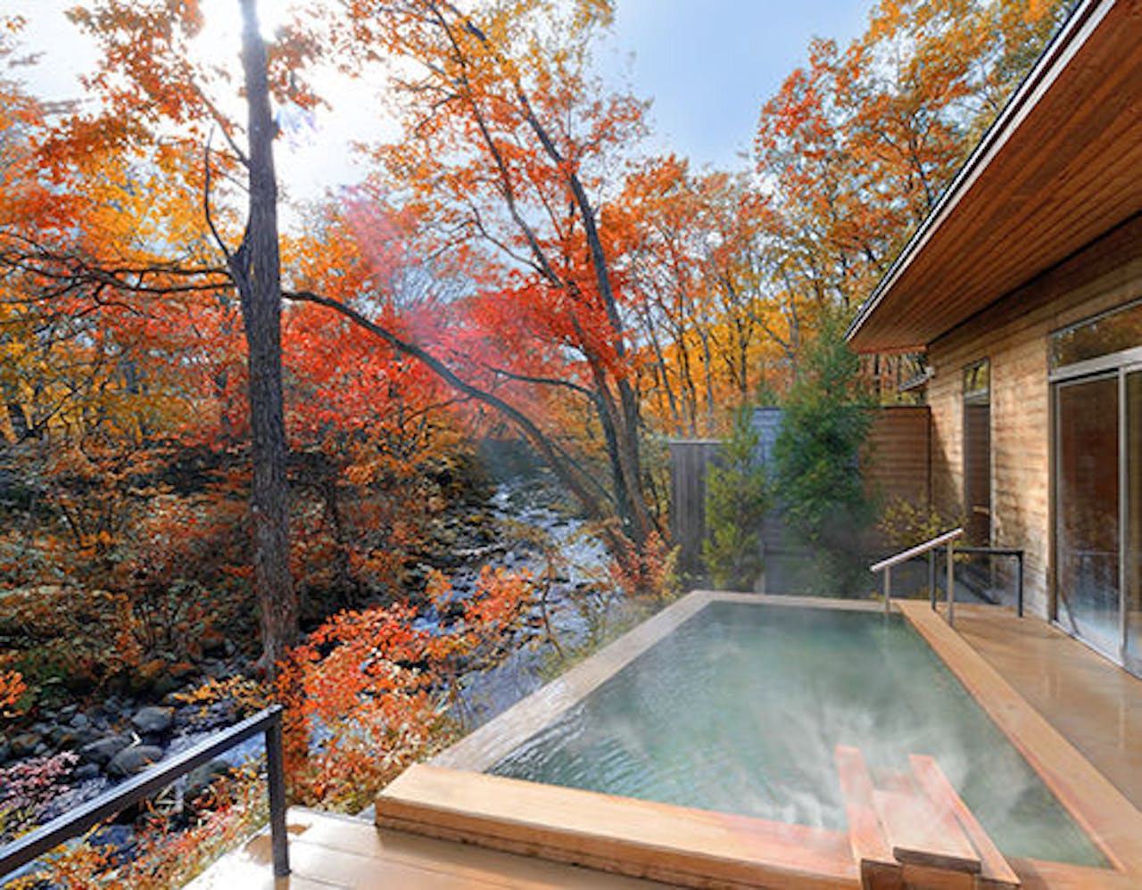 を鑑賞しながら温泉に浸かり、こだわりの食事を